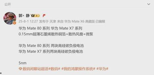 哇哦,你听说了吗?最近手机界又炸开了锅,因为华为的新旗舰——Mate X7的最新爆料已经满天飞了!这款折叠屏手机不仅外观惊艳,功能强大,更是引发了无数科技爱好者的热议。今天,就让我带你一起揭开Mate X7的神秘面纱,看看它究竟有哪些亮点吧!